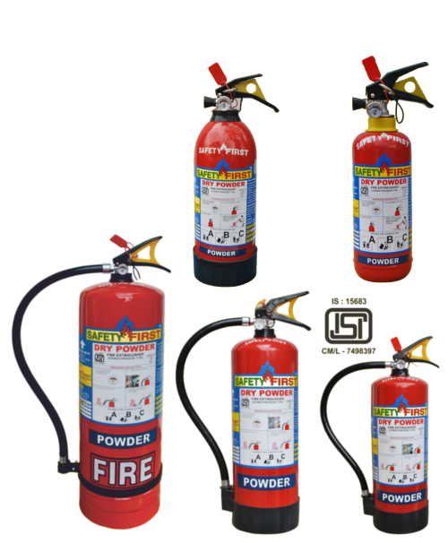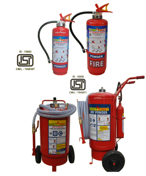 ISI mark Dry Chemical Fire Extinguisher control 'A', 'B', & 'C' class of fire like wood, paper, cloth, oil, and petroleum product, solvents, paints, varnishes, chemical liquids. All flammable liquids & electrical fire & gas fire, etc.,